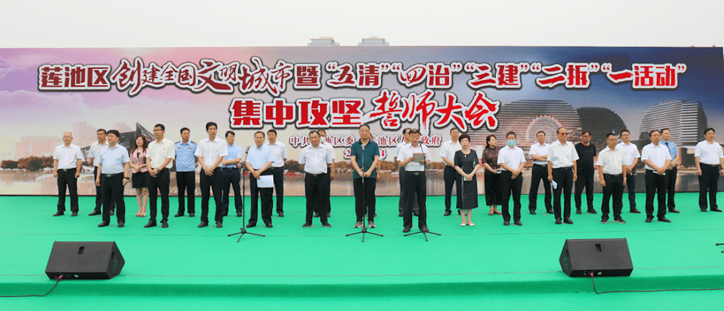 會議由區(qū)委副書記、區(qū)長、區(qū)創(chuàng)城工作指揮部指揮長劉曉鵬主持;區(qū)委黨委、宣傳部長、區(qū)創(chuàng)城工作指揮部副指揮長兼創(chuàng)城辦主任羅曉瑞向參會人員簡要通報了蓮池區(qū)創(chuàng)城工作進展情況并對下一步工作進行了安排;區(qū)委副書記、區(qū)創(chuàng)城工作指揮部常務(wù)副指揮長高國華宣讀了《保定市蓮池區(qū)開展“五清”“四治”“三建”“兩拆”“一活動”集中攻堅行動 推動“三整治五提升”文明城市創(chuàng)建實施方案》;區(qū)委書記、區(qū)創(chuàng)城工作指揮部政委董鳴鏑介紹了我市目前創(chuàng)城工作的開展情況,對本次行動要求作了具體闡述,并提出了更高的要求,希望全區(qū)上下團結(jié)一心,進一步弘揚“三有四干”的蓮池精神和“徹夜鏖戰(zhàn)、日夜兼程、晨起而作、只爭朝夕”的蓮池作風(fēng),共同為我市創(chuàng)建全國文明城市工作貢獻力量。
