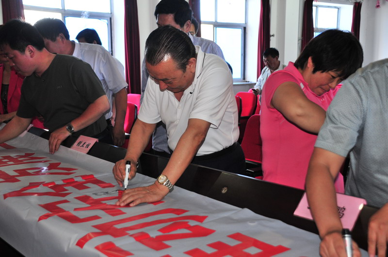 參會人員在“強(qiáng)化安全基礎(chǔ),推動安全發(fā)展,全面推行標(biāo)準(zhǔn)化”條幅上簽字