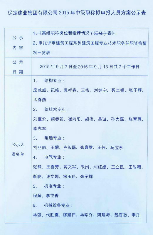 2015中級(jí)職稱擬申報(bào)人員方案公示