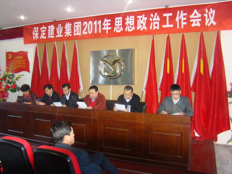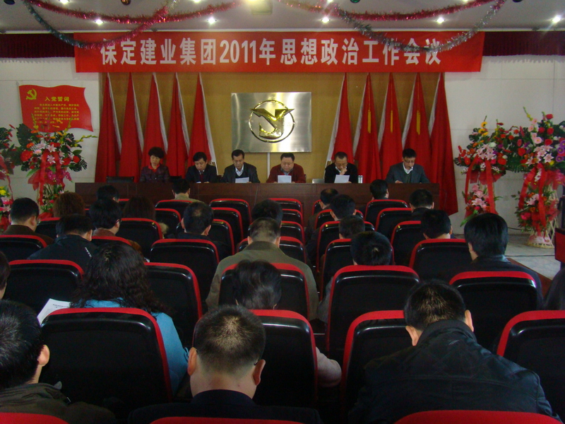 2011年3月8日,保定建業(yè)集團有限公司2011年思想政治工作會議在莊嚴的國歌聲中拉開了序幕,會議由黨委辦公室主任馬亞軍主持,集團各公司黨、政、工、團、婦、武裝、保衛(wèi)負責人參加會議。